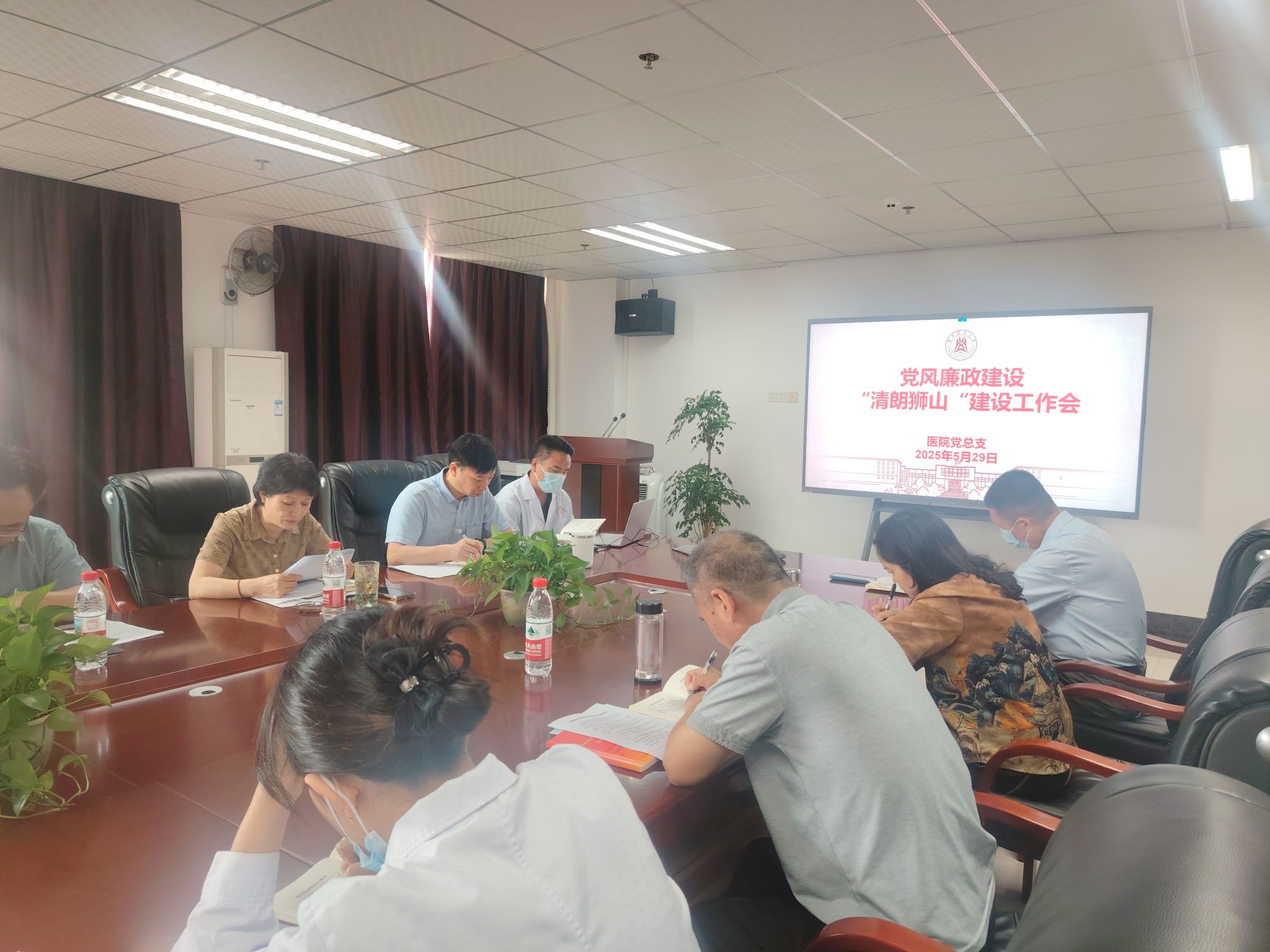 5 月 29 日下午 4:30,医院党总支在门诊五楼会议室召开党风廉政建设“清朗狮山”建设工作专题会议,全体党员参会,会议由党总支副书记赵小剑主持。
